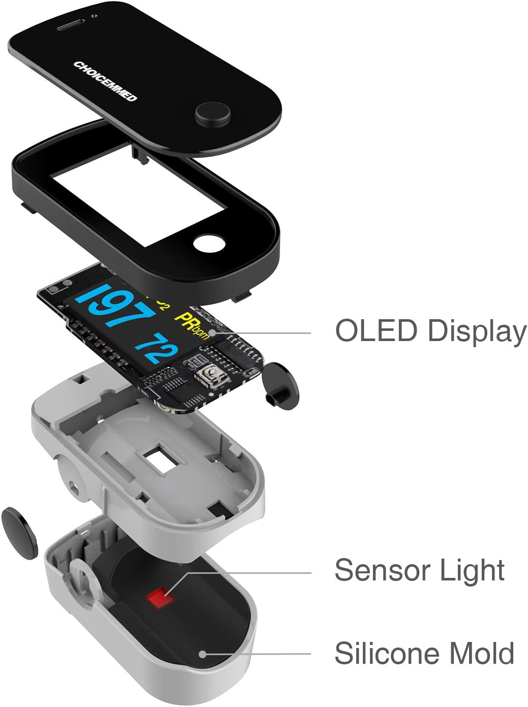 12 reviews for CHOICEMMED Black Dual Color OLED Finger Pulse Oximeter – Blood Oxygen Saturation Monitor with Color OLED Screen Display and Included Batteries – O2 Saturation Monitor