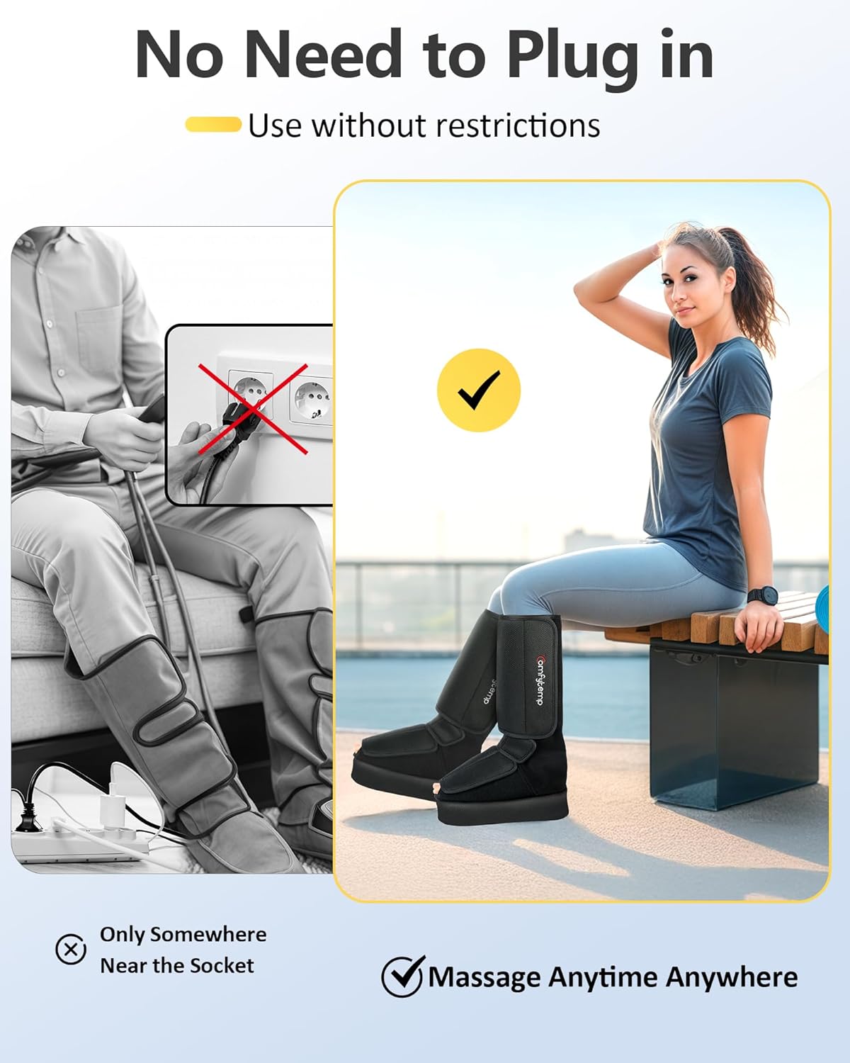 Freedom from Wires: This wireless foot and calf massager features a powerful 5000mAh battery, delivering up to 5 hours of cordless use. Say goodbye to tangled wires and the need for constant plugging in—enjoy effortless relaxation whether you’re at home, in the office, or on the go. Its wireless design offers ultimate convenience, allowing you to unwind anytime, anywhere. Note: This foot massager may produce some noise during normal operation.