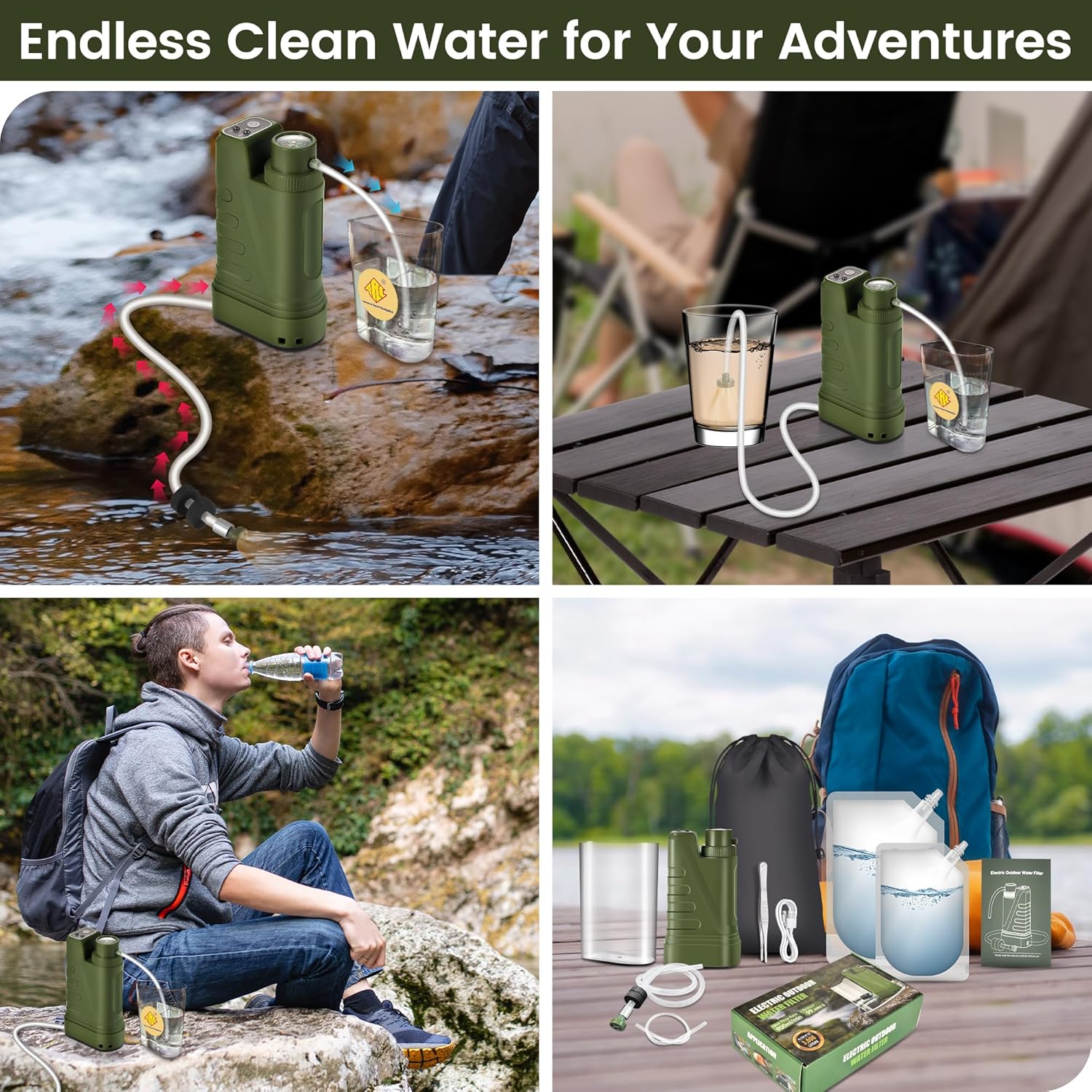Electric Portable Water Filter Survival,Fast Flow,Lightweight,4-Layer Filtration Provide Better Tasting,Reusable Water Purification System for Outdoor Travel,Camping,Hiking,Backpacking