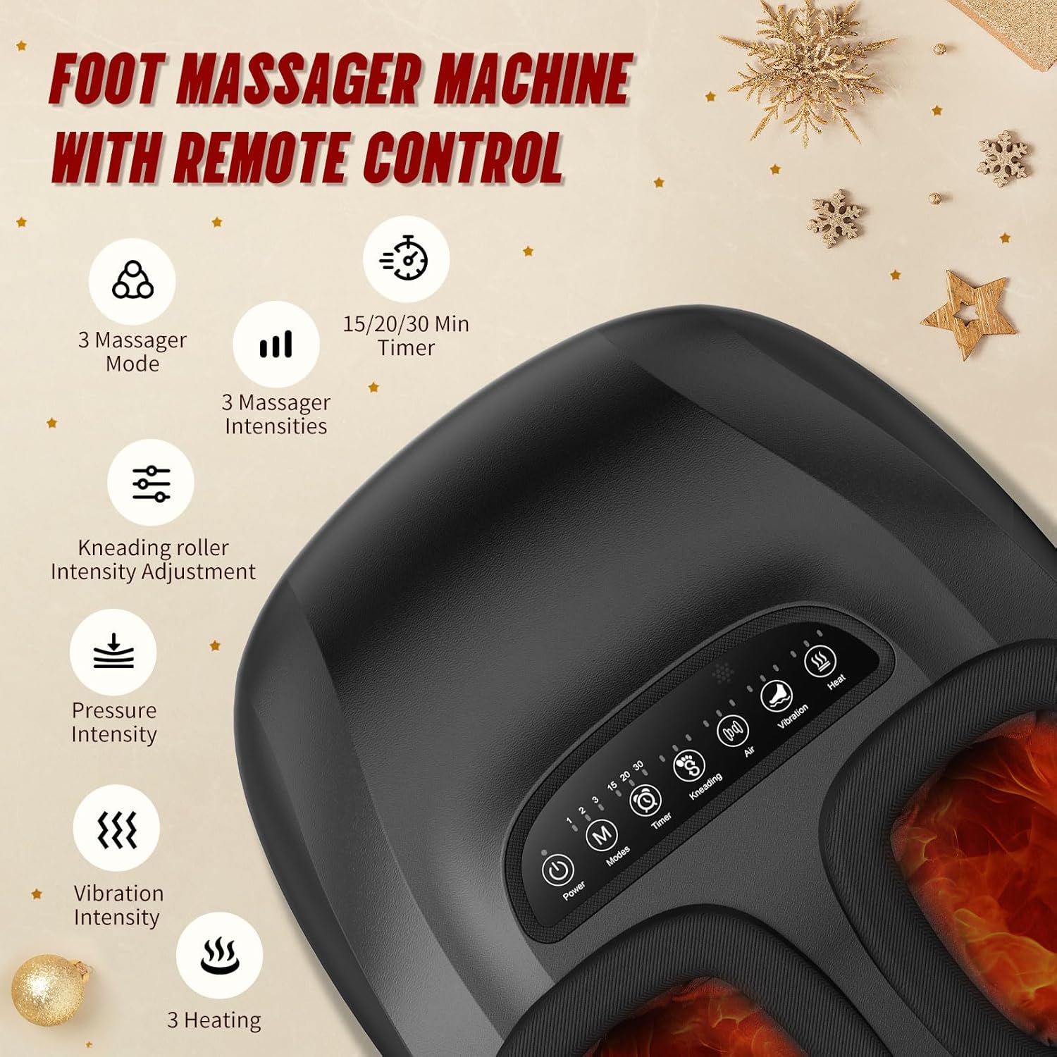 Foot Massager Machine with Heat [2025 Upgraded], Shiatsu Deep Kneading Foot Massager for Plantar Fasciitis, 3 Heat Levels, Mothers Day Gifts for Women Mom Dad, Wireless Control, True Foot Massage