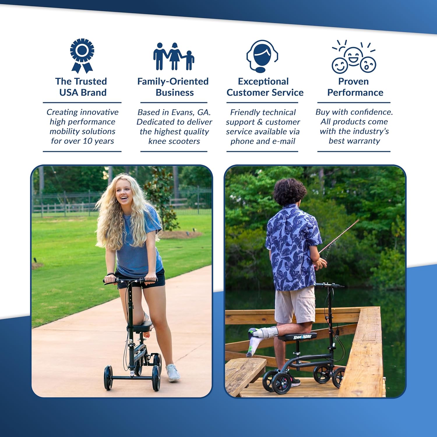 THE PROVEN USA BRAND: KneeRover has been creating innovative, high performance mobility solutions for over 10 years, including the original All Terrain and Pediatric knee scooters. We are a family-oriented business based in Evans, Georgia USA – dedicated to delivering the highest quality knee scooters.