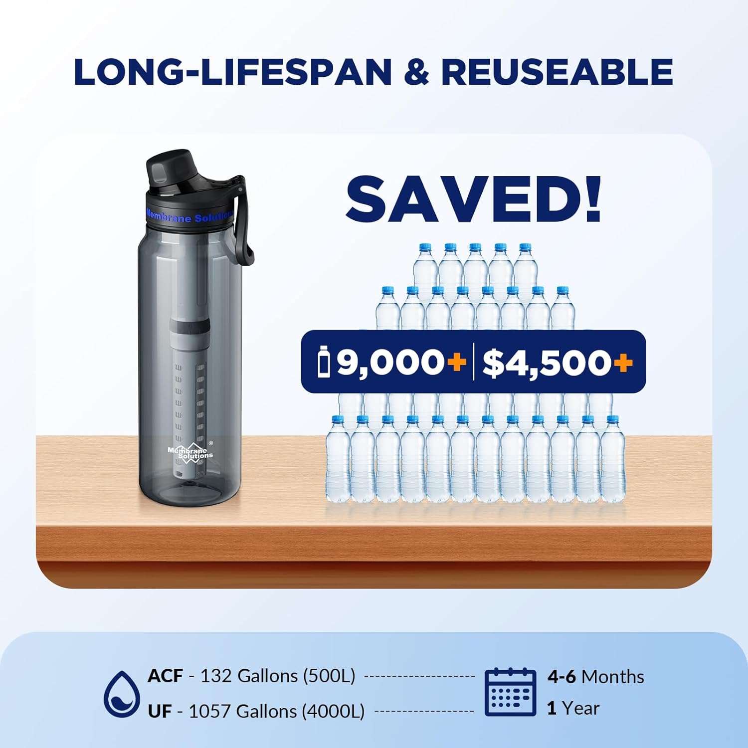 8 reviews for Membrane Solutions C3 Filtered Water Bottle, 36oz BPA-Free Bottle with Replaceable ACF+UF Filter Cartridge, Portable Water Filter, Travel, Hiking & Camping for Clean Drinking Water Anywhere