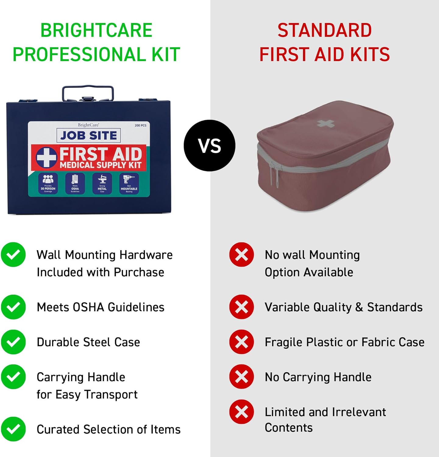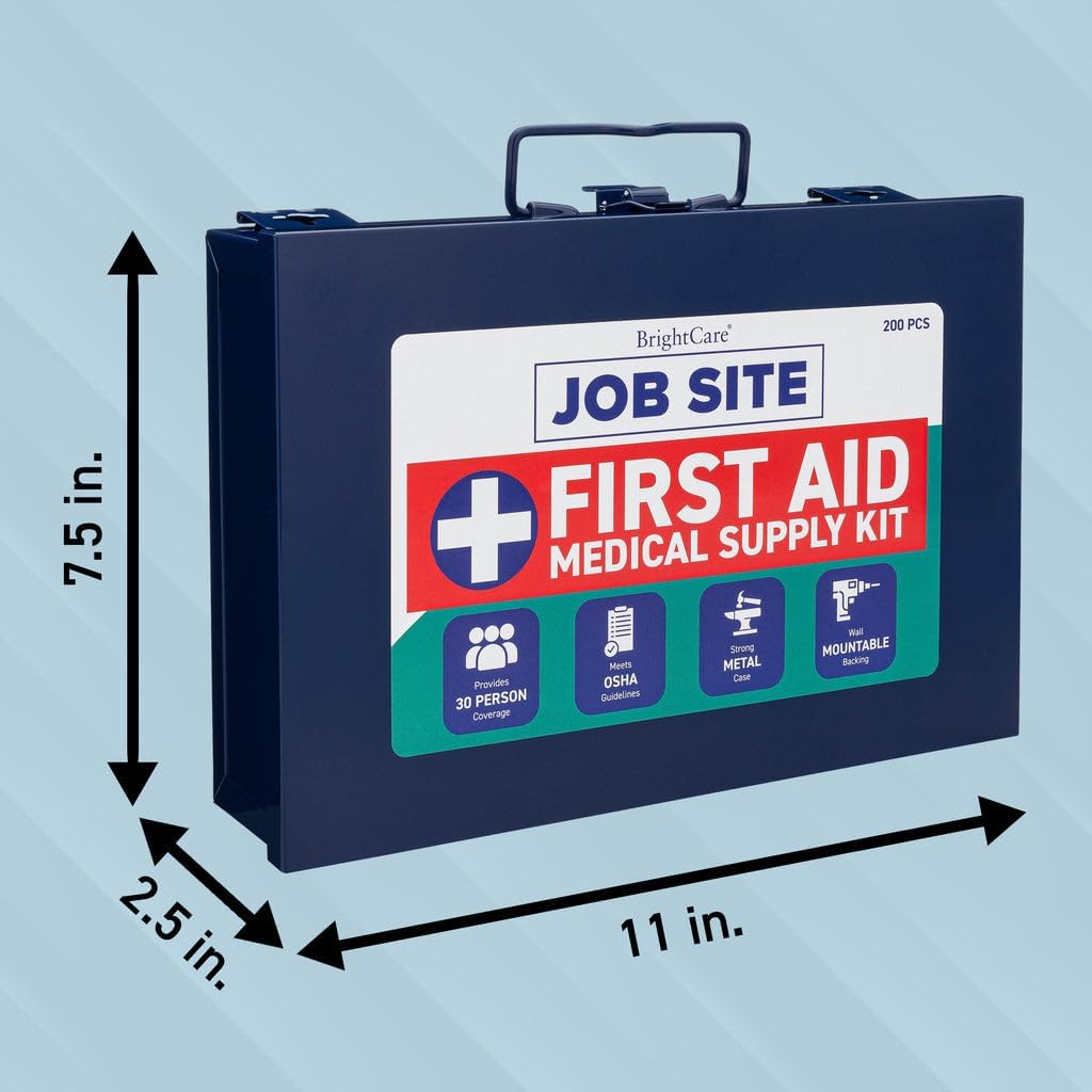 Durable & Portable: This BrightCare heavy duty first aid kit is built for job-site portability. Its metal case is smash-resistant and waterproof, making it perfect for all storage types. Use the folding handle to take it from the truck to the job site with ease.