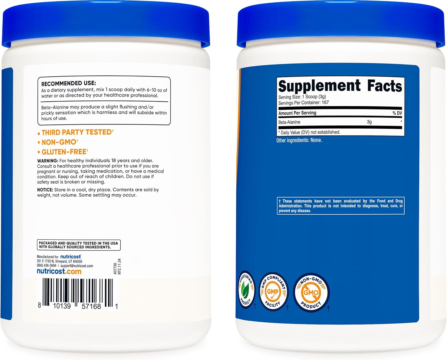 Nutricost Beta Alanine Powder 500 Grams (1.1lbs) – Pure Beta Alanine, Gluten Free & Non-GMO
